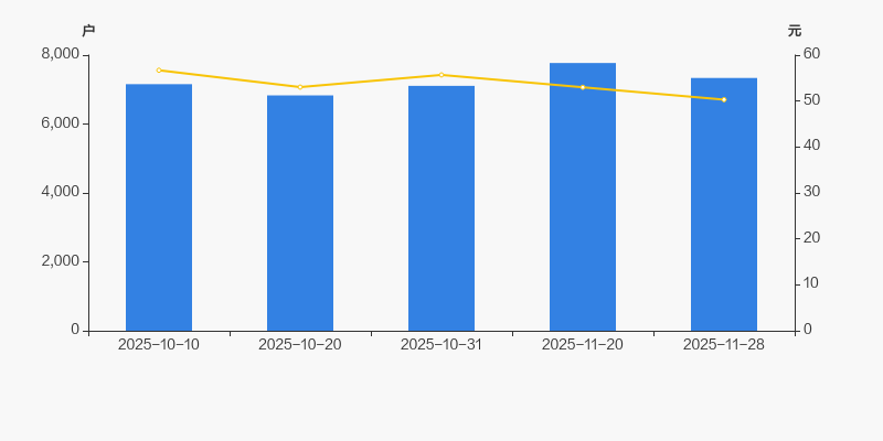 截至2025年11月28日,公司最新总股本为5147万股,其中流通股本为1991.51万股。户均持有流通股数量由上期的2563股上升至2714股,户均流通市值13.66万元。