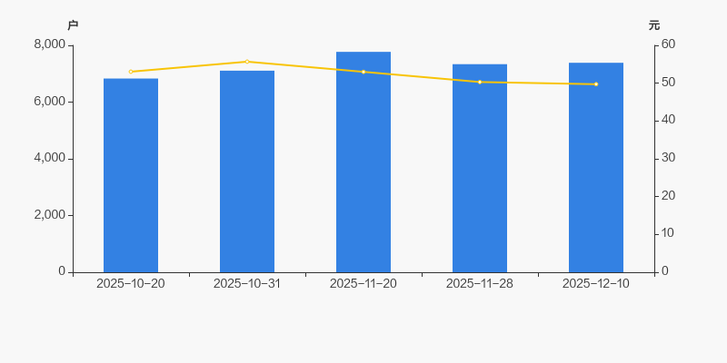 截至2025年12月10日,公司最新总股本为5147万股,其中流通股本为1991.51万股。户均持有流通股数量为2696股,较上期略有下降;户均流通市值13.41万元。