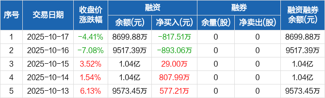 五洲医疗:融资净偿还817.51万元,融资余额8699.88万元(10-17)