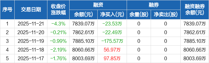 五洲医疗:连续3日融资净偿还累计221.59万元(11-21)