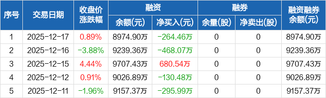 五洲医疗:融资净偿还264.46万元,融资余额8974.9万元(12-17)