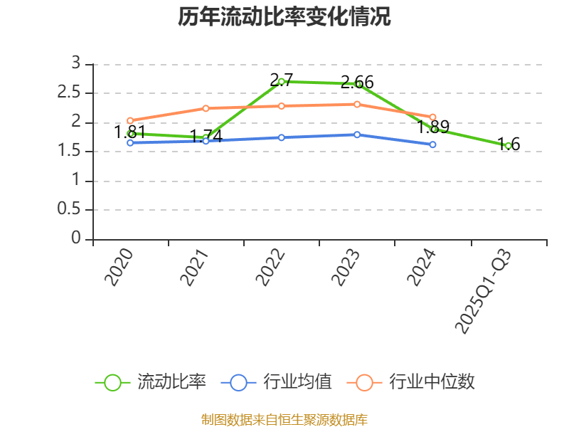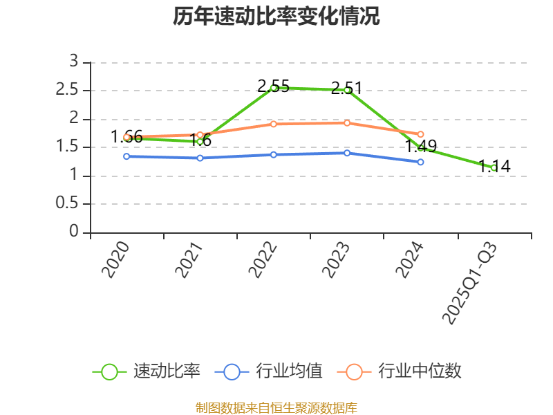 2025年前三季度,公司流动比率为1.6,速动比率为1.14。