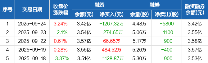 瑞泰新材:融资净偿还1267.32万元,融资余额3.42亿元(09-24)