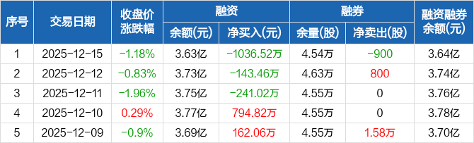 瑞泰新材:连续3日融资净偿还累计1421万元(12-15)