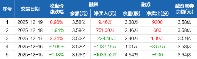 瑞泰新材:融资净买入9.46万元,融资余额3.58亿元(12-19)