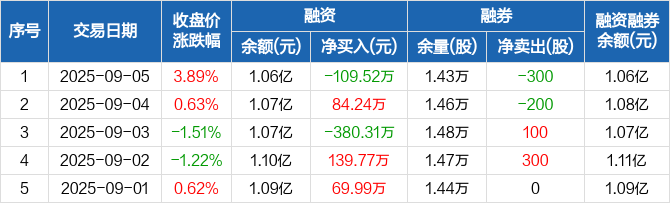 宏源药业:融资净偿还109.52万元,融资余额1.06亿元(09-05)