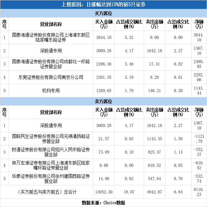 多主力现身龙虎榜,宏源药业涨停(10-13)