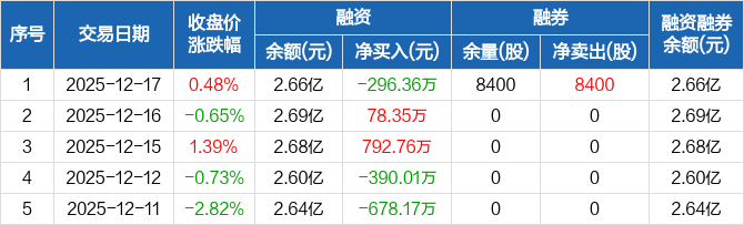 杰创智能:融资净偿还296.36万元,融资余额2.66亿元(12-17)