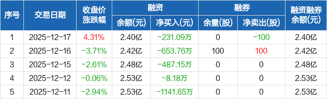 威尔高:连续5日融资净偿还累计2521.83万元(12-17)