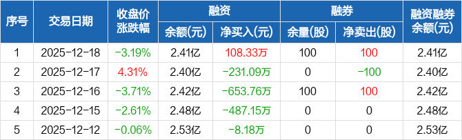 威尔高:融资净买入108.33万元,融资余额2.41亿元(12-18)