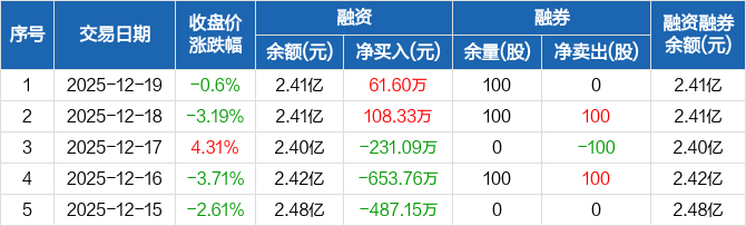 威尔高:融资净买入61.6万元,融资余额2.41亿元(12-19)