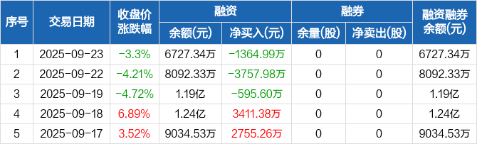 普蕊斯:连续3日融资净偿还累计5718.56万元(09-23)