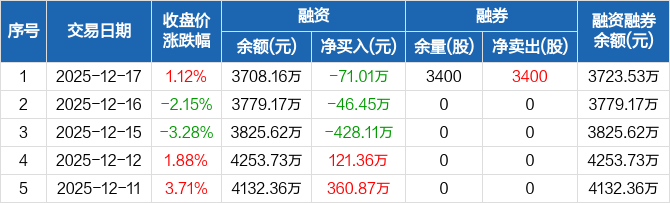 普蕊斯:融资余额3708.16万元,创近一年新低(12-17)