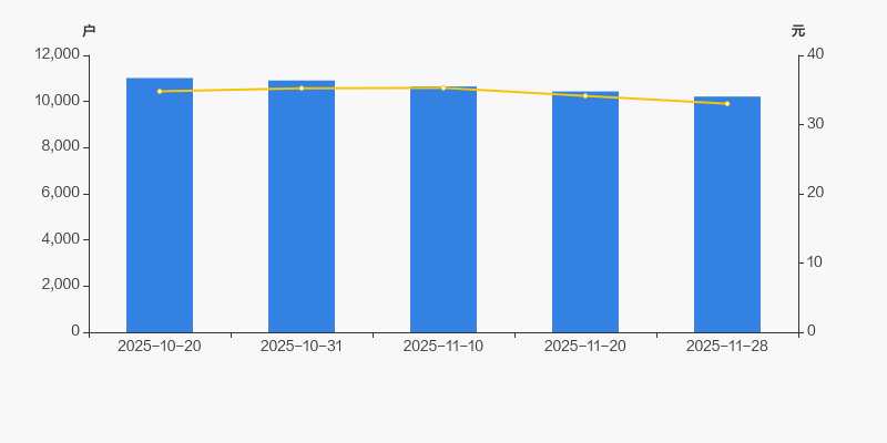 截至2025年11月28日,公司最新总股本为9167万股,其中流通股本为8906.5万股。户均持有流通股数量由上期的8534股上升至8720股,户均流通市值28.79万元。