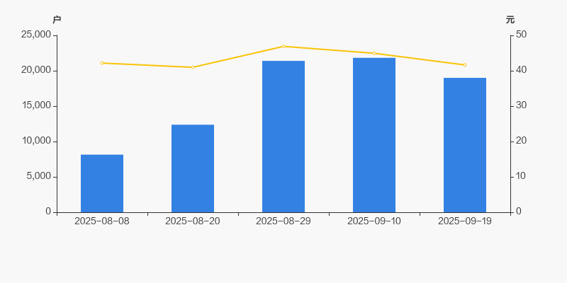 2025年8月8日至今,公司股东户数成倍增长,区间涨幅达133.24%。2025年8月8日至2025年9月19日区间股价下降1.26%。