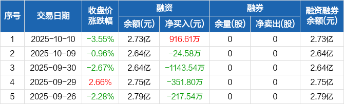 恒工精密:融资净买入916.61万元,融资余额2.73亿元(10-10)