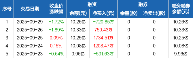 泰恩康:融资净偿还720.85万元,融资余额10.26亿元(09-29)