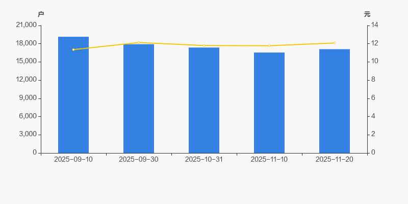 截至2025年11月20日,公司最新总股本为3.03亿股,其中流通股本为1.68亿股。户均持有流通股数量由上期的1.02万股下降至9851股,户均流通市值11.9万元。