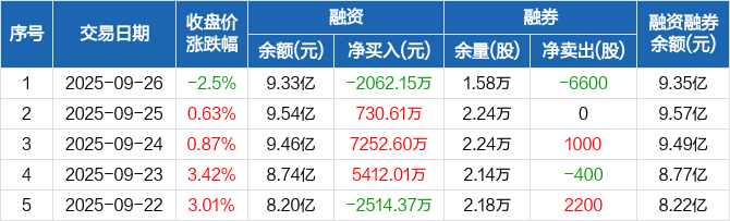 华大九天:融资净偿还2062.15万元,融资余额9.33亿元(09-26)