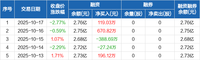 汉仪股份:融资净买入119.03万元,融资余额2.76亿元(10-17)