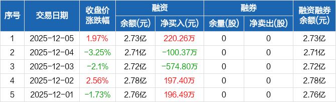 汉仪股份:融资净买入220.26万元,融资余额2.73亿元(12-05)