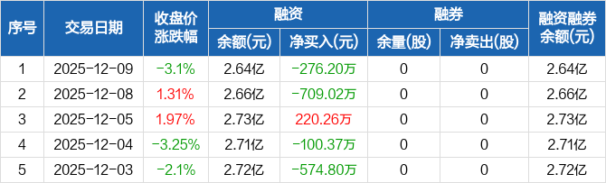 汉仪股份:融资净偿还276.2万元,融资余额2.64亿元(12-09)