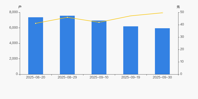 自2025年8月29日以来,公司股东户数连续3期下降,截至目前减幅为21.38%。2025年8月29日至2025年9月30日区间股价上涨7.96%。