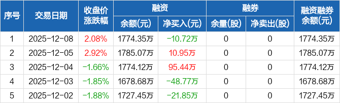 瑞晨环保:融资净偿还10.72万元,融资余额1774.35万元(12-08)