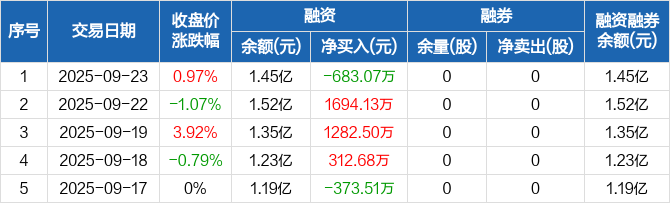 汉朔科技:融资净偿还683.07万元,融资余额1.45亿元(09-23)