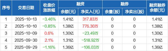 汉朔科技:融资净买入317.83万元,融资余额1.41亿元(10-13)