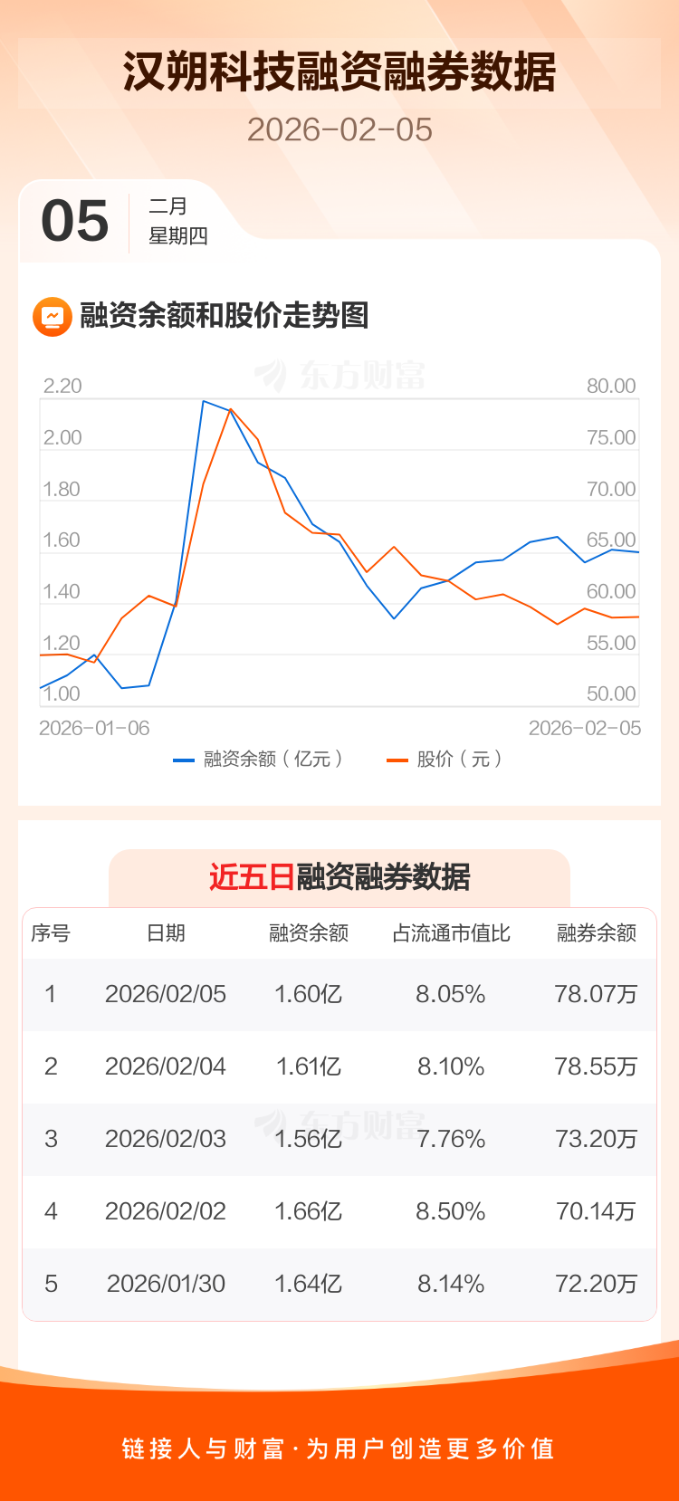 交易所最新数据显示,汉朔科技于2026年2月5日获融资买入913.48万元,融资偿还1003.93万元,当日融资净偿还90.45万元。目前,该股融资余额1.60亿,占流通市值比例为8.05%。