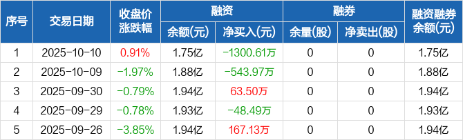 嘉曼服饰:融资净偿还1300.61万元,融资余额1.75亿元(10-10)