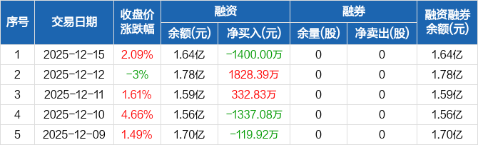 嘉曼服饰:融资净偿还1400万元,融资余额1.64亿元(12-15)