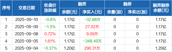 新天地:融资净偿还32.88万元,融资余额1.17亿元(09-10)