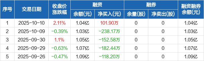 新天地:融资净买入101.9万元,融资余额1.04亿元(10-10)