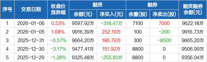 快可电子:融资净偿还318.47万元,融资余额9597.92万元(01-06)
