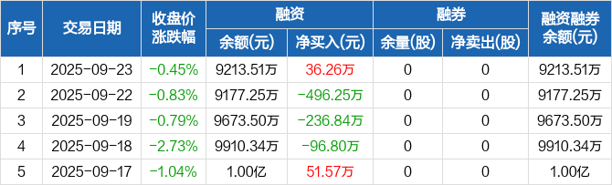 科源制药:融资净买入36.26万元,融资余额9213.51万元(09-23)