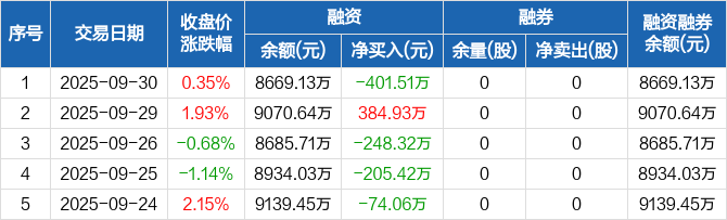 科源制药:融资净偿还401.51万元,融资余额8669.13万元(09-30)
