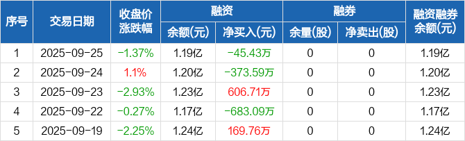 金禄电子:融资净偿还45.43万元,融资余额1.19亿元(09-25)
