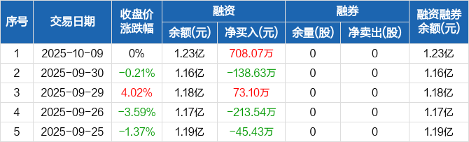金禄电子:融资净买入708.07万元,融资余额1.23亿元(10-09)