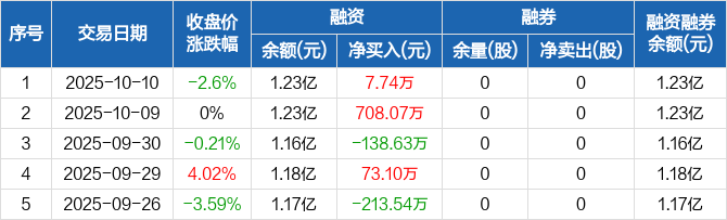 金禄电子:融资净买入7.74万元,融资余额1.23亿元(10-10)