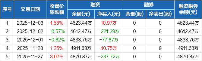 聚胶股份:融资净买入10.97万元,融资余额4623.44万元(12-03)