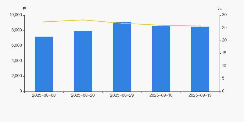 2025年8月8日至今,公司股东户数显著增长,区间涨幅为18.11%。2025年8月8日至2025年9月19日区间股价下降5.88%。