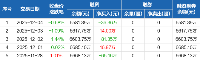 康力源:融资净偿还36.36万元,融资余额6581.39万元(12-04)