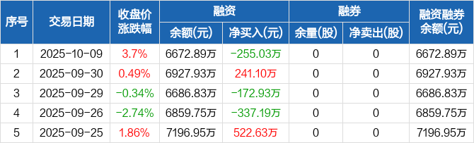 国缆检测:融资净偿还255.03万元,融资余额6672.89万元(10-09)