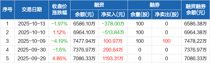 东星医疗:融资净偿还378万元,融资余额6586.1万元(10-13)