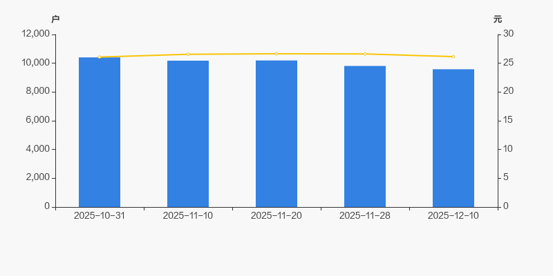 2025年10月31日至今,公司股东户数有所下降,区间跌幅为7.93%。2025年10月31日至2025年12月10日区间股价上涨0.27%。