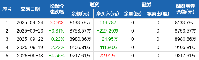 海科新源:连续4日融资净偿还累计1083.82万元(09-24)