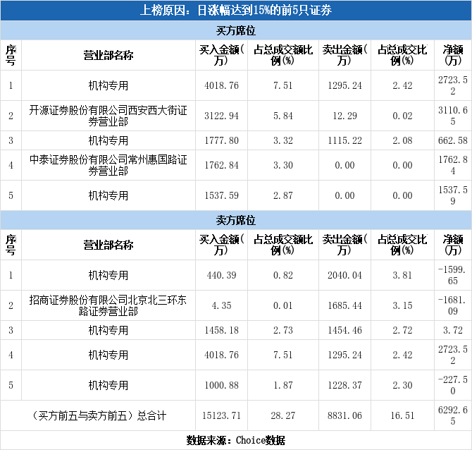 多主力现身龙虎榜,海科新源涨停(10-20)