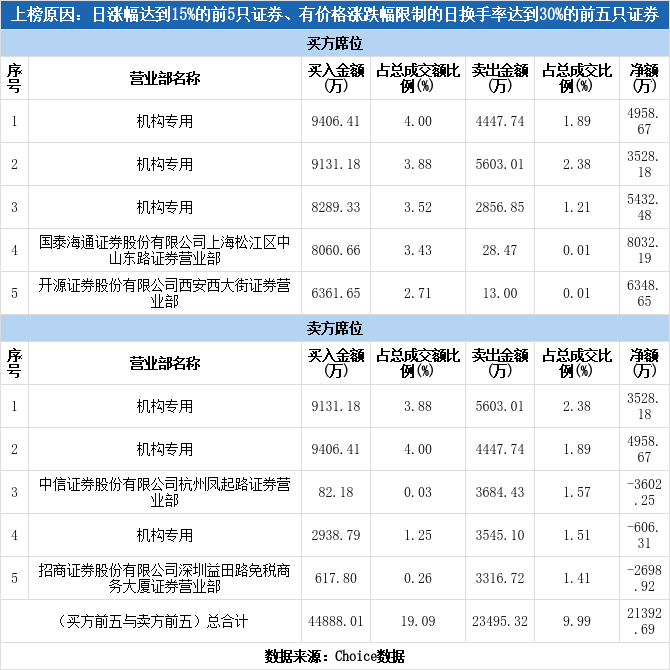 多主力现身龙虎榜,海科新源涨停(11-27)